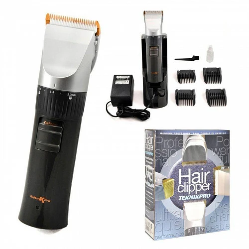 La Máquina de Corte Profesional Hair Clipper Cerámica de Teknikpro es una herramienta de corte con cuchilla de cerámica de alta calidad y resistencia. Esta máquina recargable incluye una base de soporte de recarga rápida para optimizar el uso de la batería. Viene con cuatro alzas de distintos largos para una variedad de cortes, adecuados tanto para damas como para caballeros.